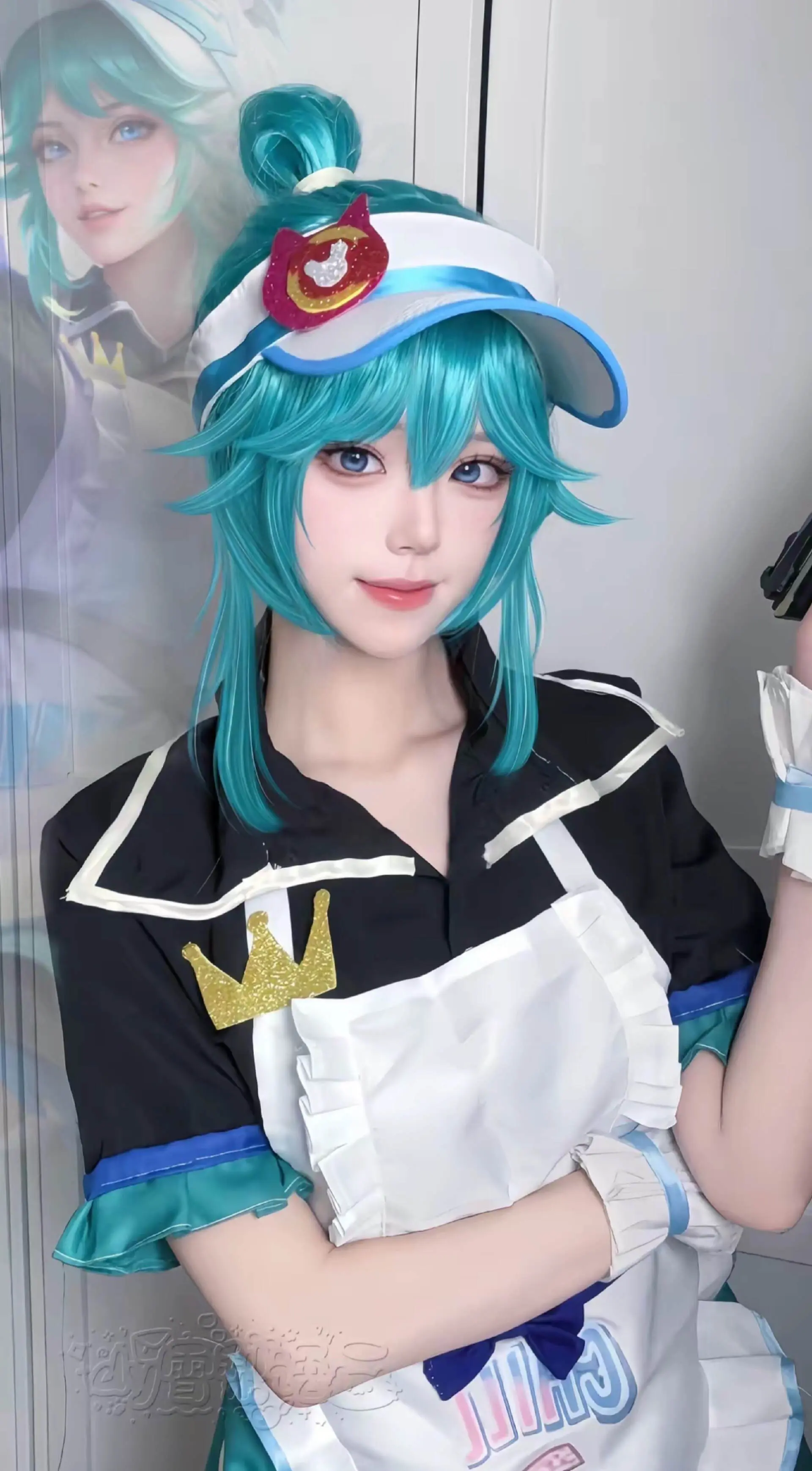 最后就是小白兔奶糖还cos过虞姬,这款皮肤是战令皮肤,她身穿白色的女仆裙,头上戴着一顶绿色的假发,看着很潮。而且,眼睛里面同样戴着蓝色的美瞳,手中还拿着一把黑色的武器,看着造型很还原。